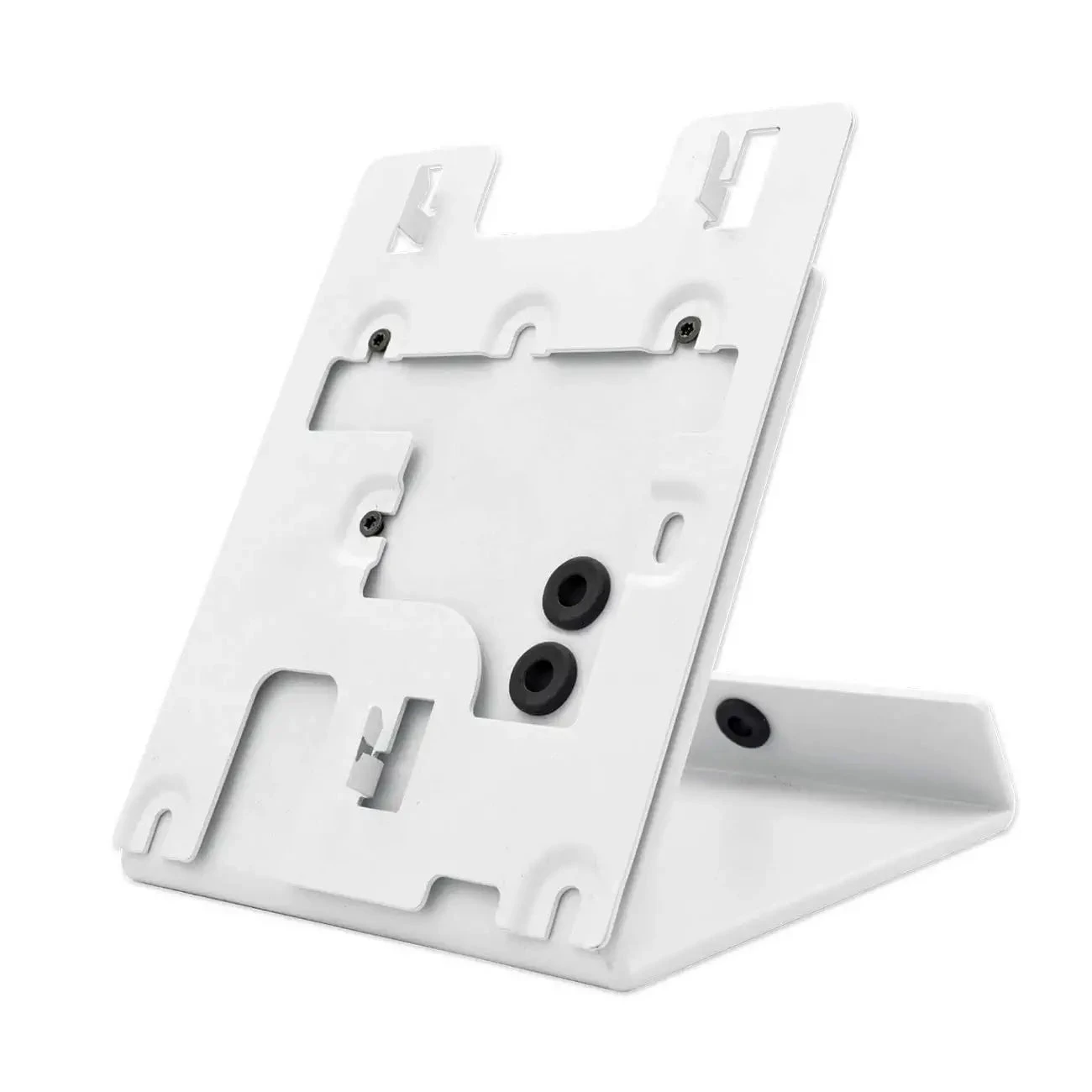 The Table Stand A8003, specially developed for the DoorBird indoor station A1101, allows the operation of the indoor station also on tables or sideboards. The high-quality steel construction and the anti-slip pad on the underside ensure stability and optimal surface adhesion. Through the cable outlets on the rear side, CAT5 network cables and higher can be installed in a safe manner.
